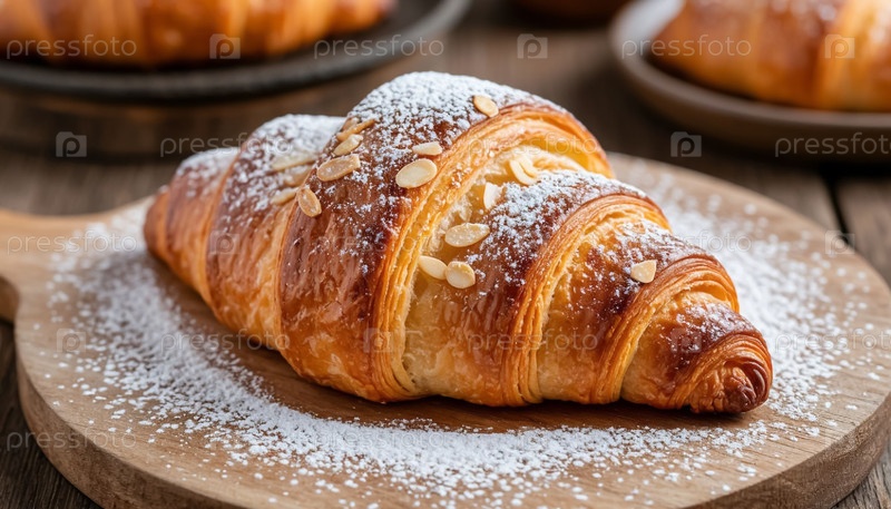 Хрустящий золотой кроассан на деревянном стойке