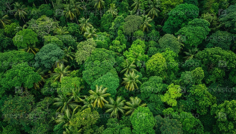 Вид с воздуха зеленых джунглей, созданный ИИ