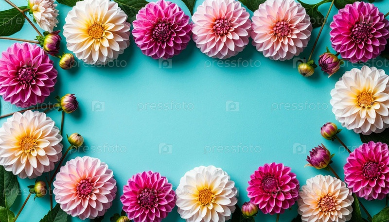 Далия на синем фоне, копировальное пространство. Сгенерированный ИИ. Человек в халате с чашкой чая в руках