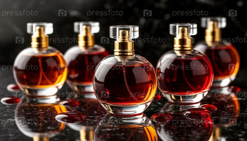 Линейка роскошных парфюмерий на отражающей поверхности