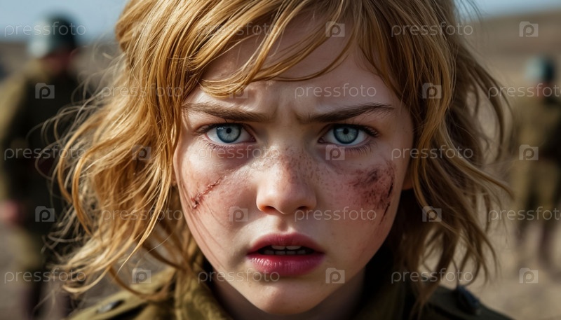 Лицо девушки с синяками в военной форме