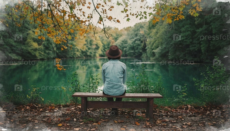 Девушка в парке осенью, фотоаппарат. акварель сгенерирована AI