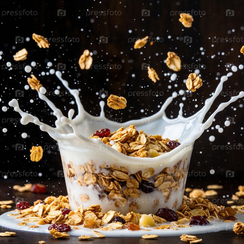 Молоко наливается в мюсли