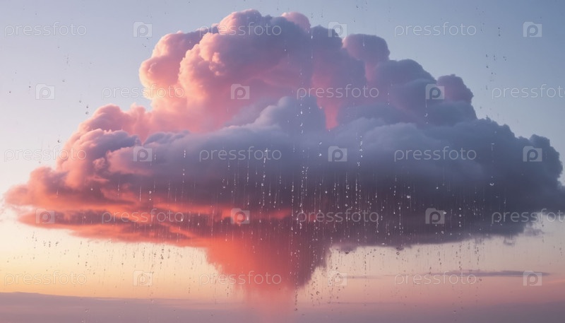 Футуристическое розовое облако с большими капельками дождя, падающими от него