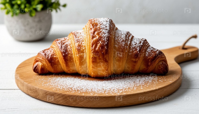 Хрустящий золотой кроассан на деревянном стойке