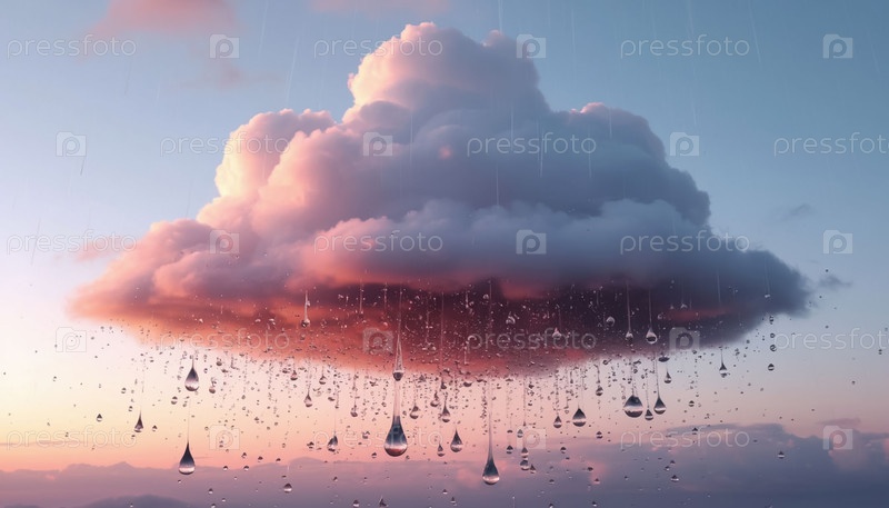 Футуристическое розовое облако с большими капельками дождя, падающими от него