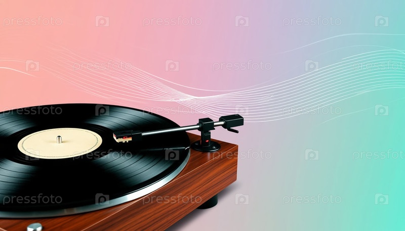 Музыкальное фоновое покрытие с граммофоном и виниловой пластинкой в пастельных тонах