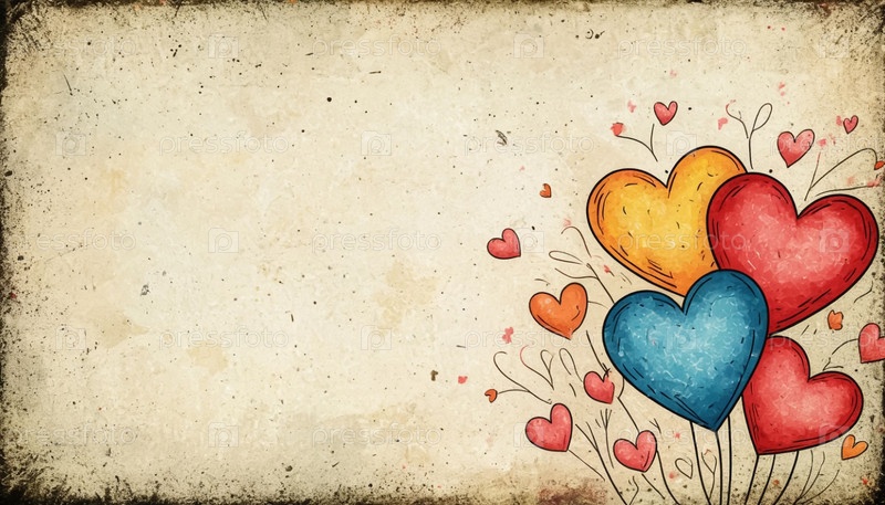 Валентинская открытка с сердцами на винтажной бумаге created by AI