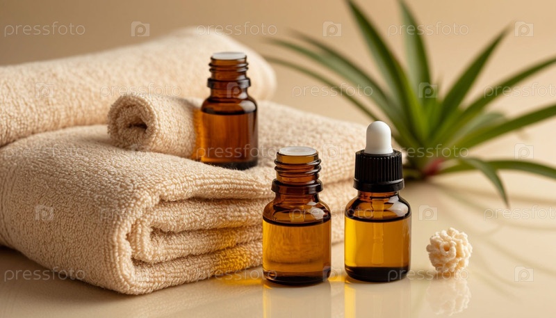 Массажные масла и спа-туалеты на бежевом фоне