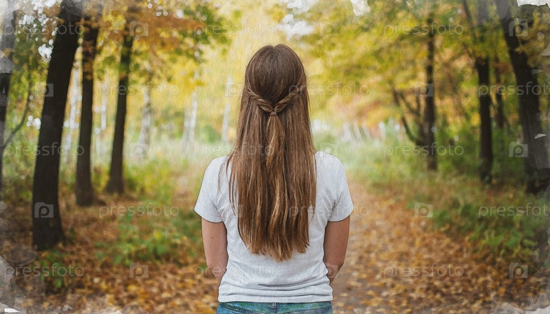 Девушка в парке осенью, фотоаппарат. акварель сгенерирована AI