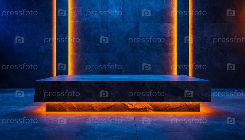 Роскошная подиум для презентации продукта на темном фоне с неоновым освещением