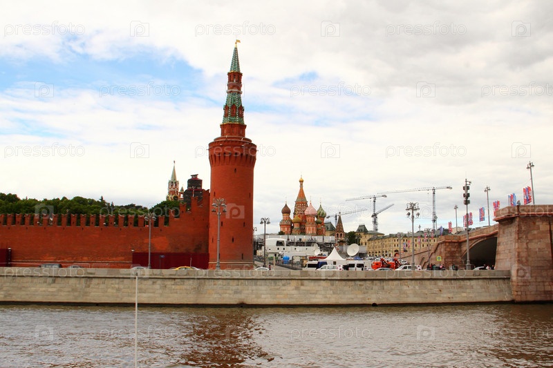 Вид на Беклемишевскую (Московскую) башню Московского Кремля с реки Москвы