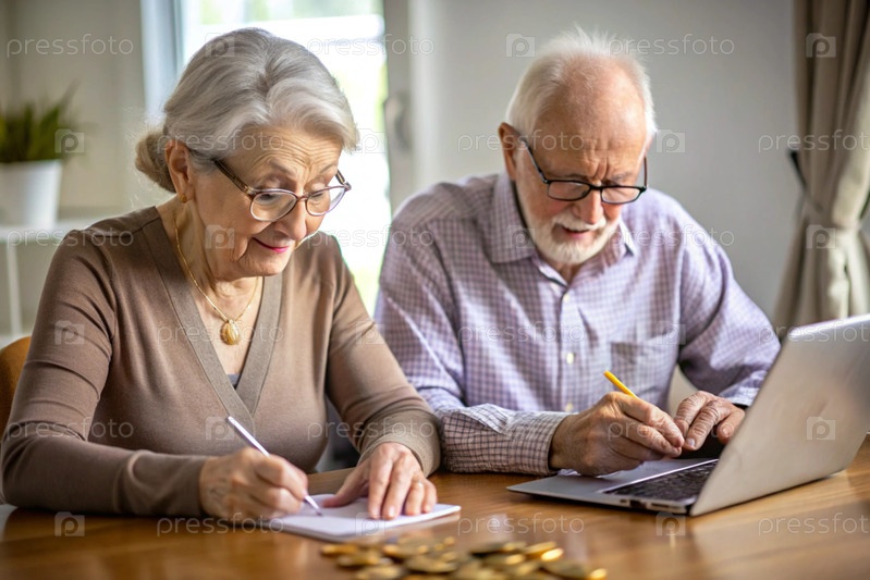 Пенсия. Экономия денег. Сбережения. Пожилая пара рассчитывает свои сбережения. Финансовая грамотность
