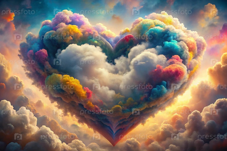 Знак на День святого Валентина Абстрактный фон Красивое, нежное и красочное сердце в облаках