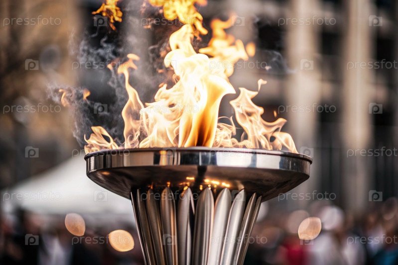Пламя олимпийского факела горит среди красивого размытого боке