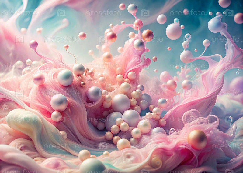 Абстрактный, мечтательный акварельный фон с волнами, полосами и жидкими потоками розового, синего и жемчуга