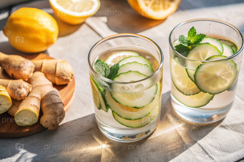 Детоксикация воды огурцом, лимоном, лаймом, имбирем и мятой для здорового питания