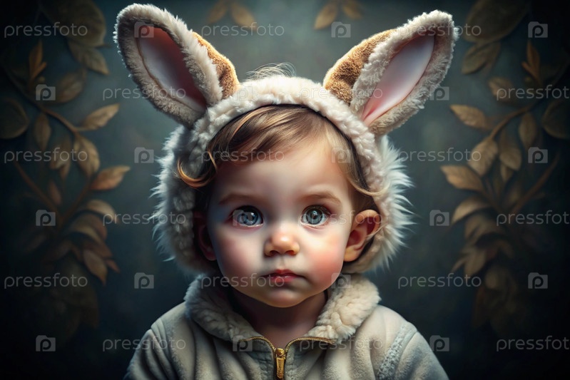 Баннер. Винтажная открытка. Девушка в костюме пасхального кролика с милыми ушами. Концепция праздника Bright Easter Spring