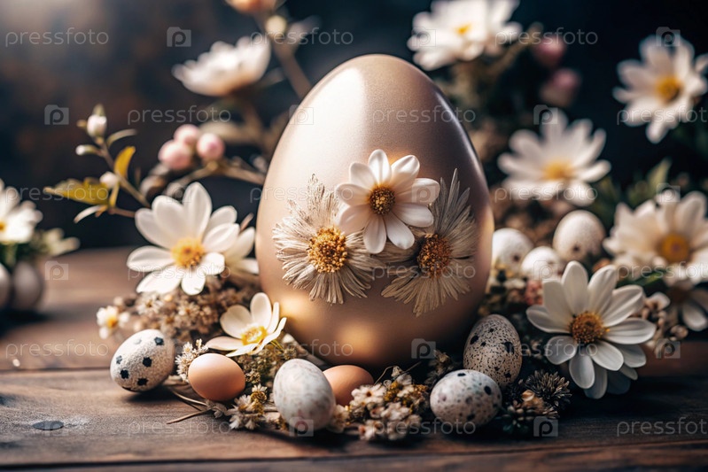 Пасхальный баннер. Концепция яркого пасхального праздника. Необычное деликатное пасхальное яйцо с нежными белыми цветами