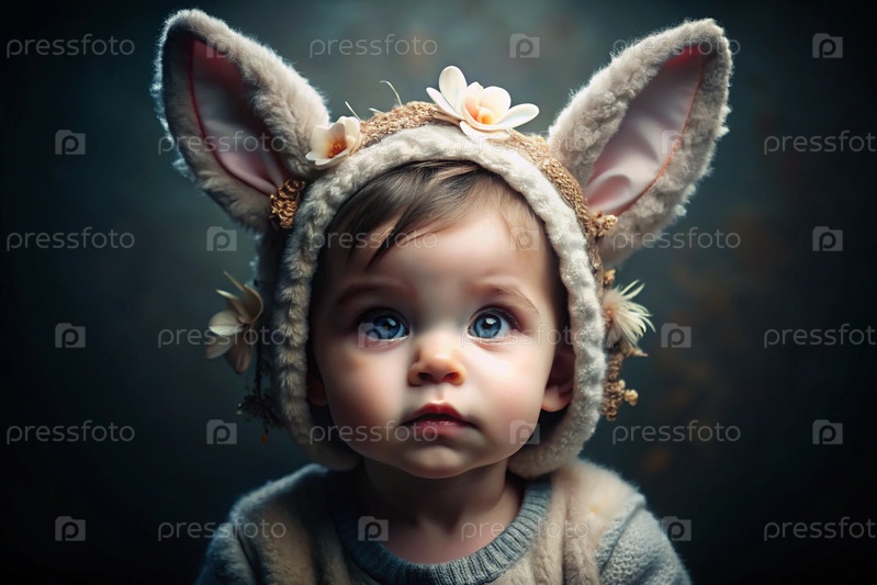 Баннер. Винтажная открытка. Девушка в костюме пасхального кролика с милыми ушами. Концепция праздника Bright Easter Spring