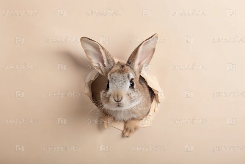 Известный праздник. милый пасхальный кролик заглядывает из разорванной дыры. концепция счастливой Пасхи