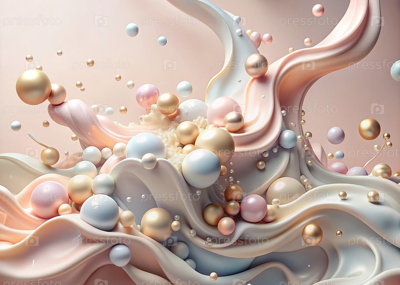 Абстрактный, мечтательный акварельный фон с волнами, полосами, жидкими потоками пастельного розового, синего и жемчуга