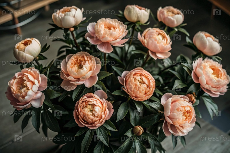 цветочный магазин большой красивый букет коралловых пион в вазе концепция домашнего комфорта