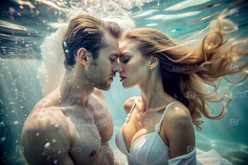Красивые влюбленные. мужчина и женщина под водой на глубине. романтические отношения. необычное свидание