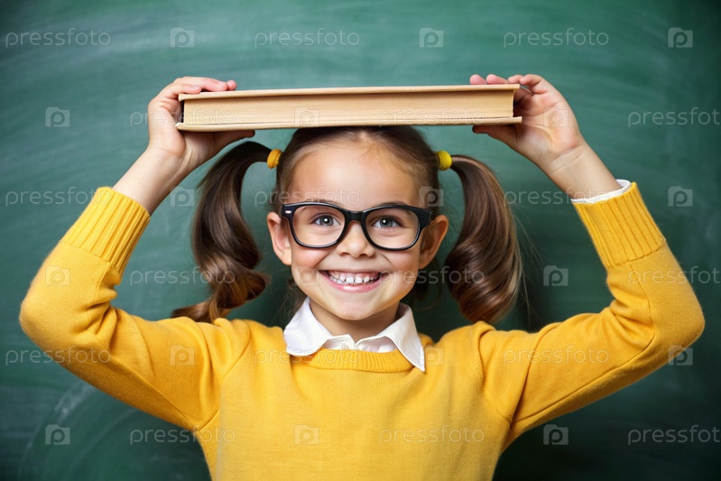 Милая, красивая первоклассница с очками. Букет цветов. Ребенок впервые идет в школу. Ребёнок с рюкзаком, книгой и цветами. Возвращение к школе