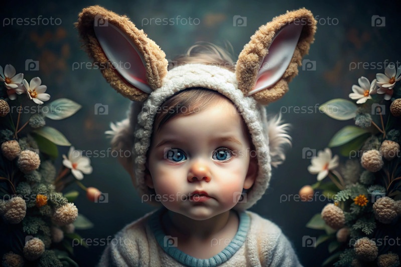 Баннер. Винтажная открытка. Девушка в костюме пасхального кролика с милыми ушами. Концепция праздника Bright Easter Spring