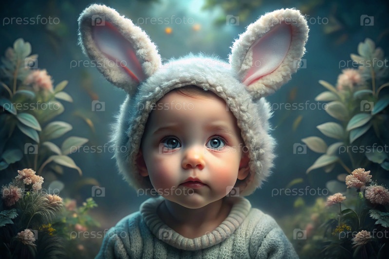 Баннер. Винтажная открытка. Девушка в костюме пасхального кролика с милыми ушами. Концепция праздника Bright Easter Spring