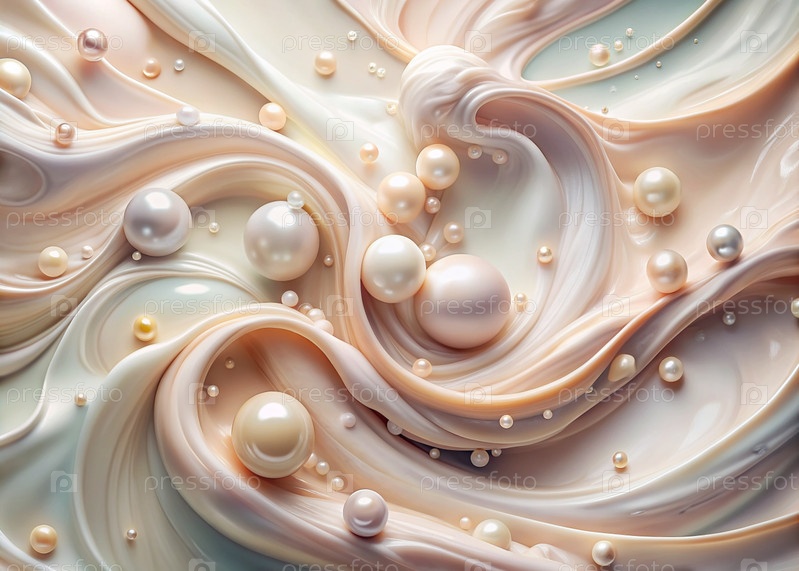 Абстрактный, мечтательный акварельный фон с волнами, венами, жидкими потоками пастельного бежевого цвета, кремовым цветом и жемчугом