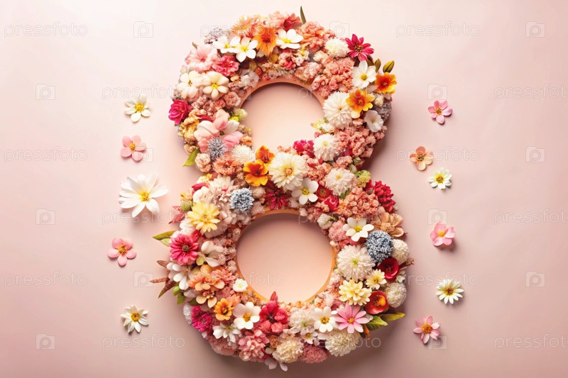 Международный женский день. баннер, флаер. праздничный цветочный фон в розовых тонах с номером 8