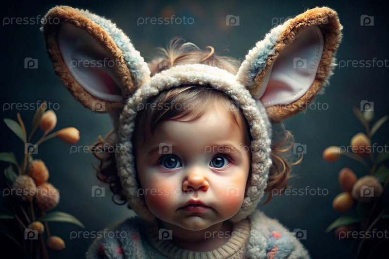 Баннер. Винтажная открытка. Девушка в костюме пасхального кролика с милыми ушами. Концепция праздника Bright Easter Spring