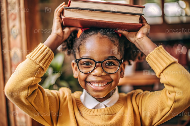 Красивая афроамериканская девушка с очками и книгами.Ребенок впервые ходит в школу.Ребёнок на свежем воздухе.Возвращение к школе