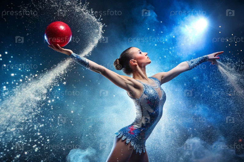 Ритмическая гимнастика Близкий план красивой гимнастки с мячом в центре внимания. олимпийский вид спорта