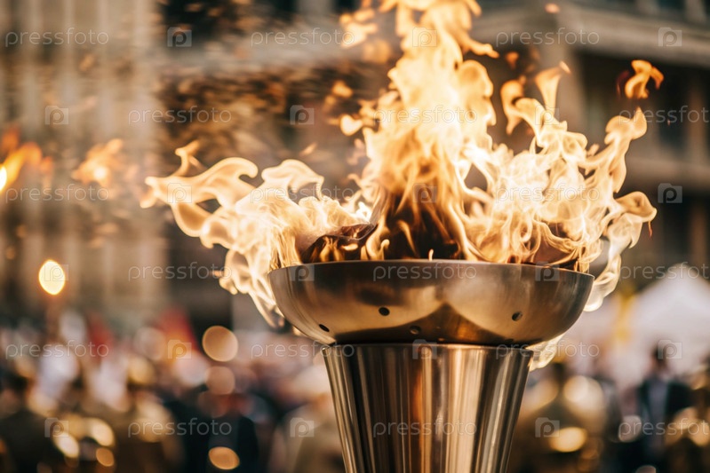 Пламя олимпийского факела горит среди красивого размытого боке