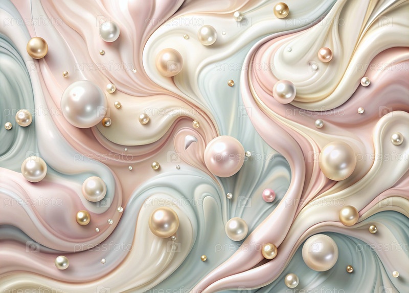 Абстрактный, мечтательный акварельный фон с волнами, полосами, жидкими потоками пастельного розового, синего и жемчуга