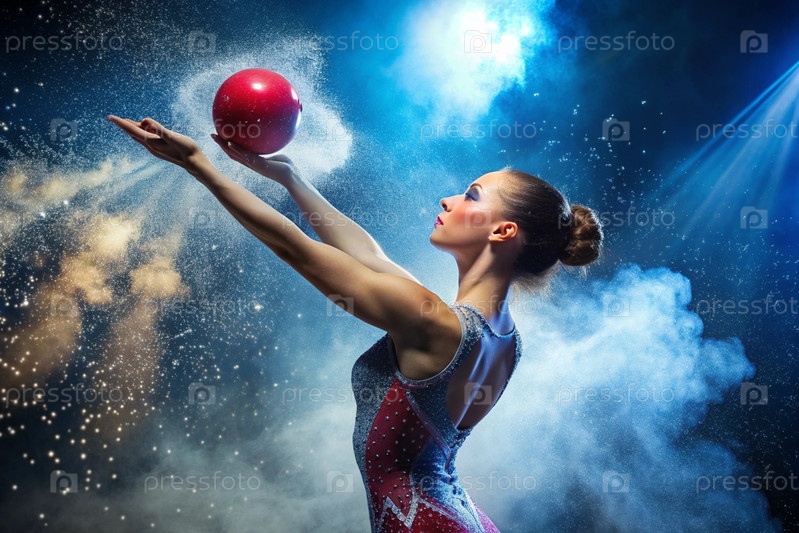 Ритмическая гимнастика Близкий план красивой гимнастки с мячом в центре внимания. олимпийский вид спорта
