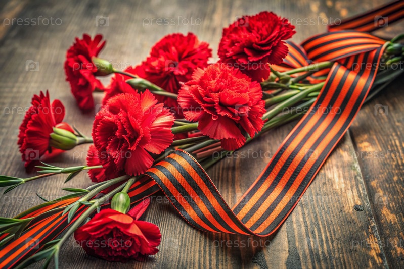 Знамя на 9 мая Красные гвозди и Георгиевская лента на старом фоне Концепция Дня Великой Победы 1941-1945 годов и День защитника Отечества
