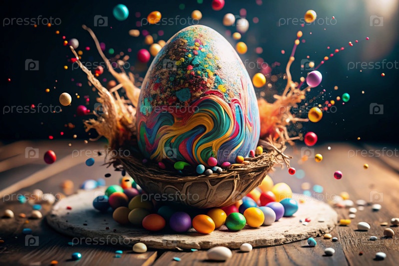 Пасхальный баннер. Концепция яркого пасхального праздника. Творческое абстрактное красочное пасхальное яйцо. Цветовой взрыв