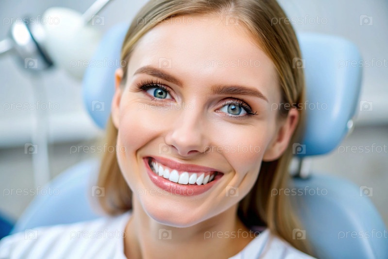 Красивая улыбка с белыми зубами. Близкий план улыбающейся женщины с натуральными полными губами и здоровой идеальной улыбкой. Концепции отбеливания зубов, стоматологического здоровья и ухода за зубами