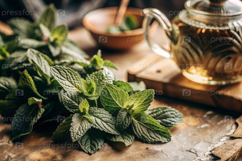 Закрытие зеленых листьев мяты. Листья с заметными венами и текстурой. Мента, бальзам для приготовления чая. Травяной чай для нервной системы