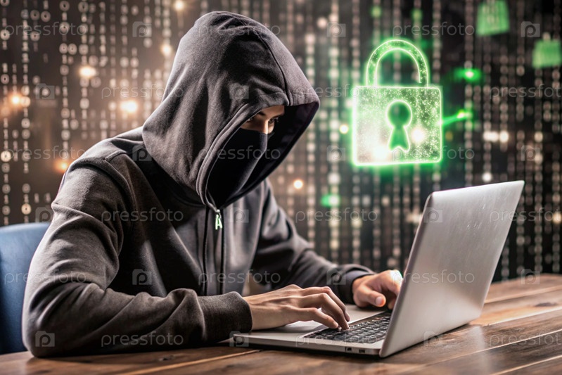 Хакер работает на ноутбуке, цифровые коды на виртуальном фоне. взлом и защита онлайн-данных. цифровые технологии, разработка программного обеспечения