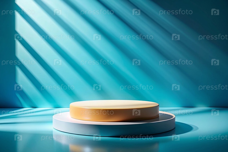 Минимальный фон для демонстрации продукта.Современная яркая трибуна с синей стеной.Креативный дизайн для презентации продукции