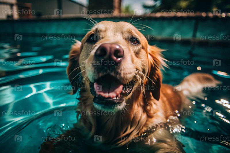 В бассейне плавает счастливый золотой ретривер в розовых очках на розовом надувном кольце.Концепция дружественного отдыха для домашних животных