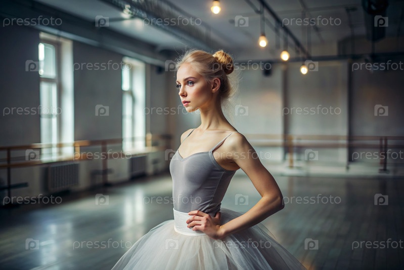 Портрет красивой молодой балерины в балетном зале, сияние русского балета, балерина в туту на фоне репетиционного зала