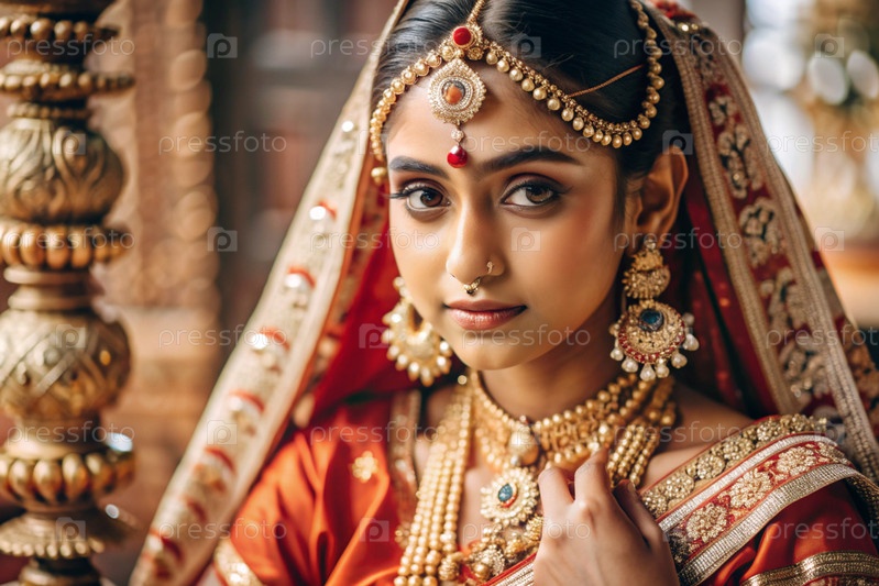 Красивая индийская девушка в традиционном национальном костюме, сари. со слонами. портрет символизирует традиции, культуру и красоту народа Индии