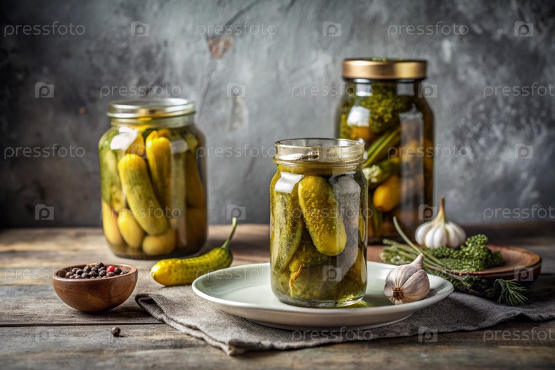 Хрустящие огурцы в прозрачной стеклянной банке на столе, покрытые льняным скатертьем. цельнозеленые маленькие огурчики с укропом и чесноком. вкусные овощи из консервов. мы закрываем огурцы для зимы