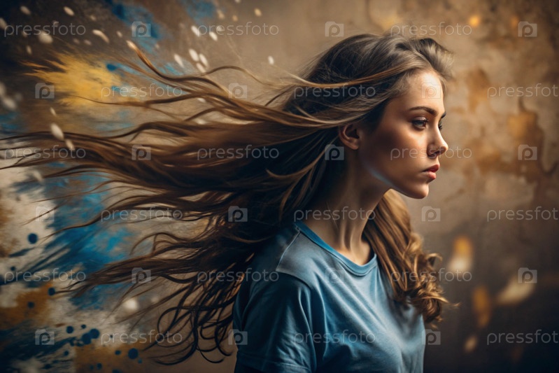 Портрет красивой молодой девушки с продуманным взглядом. волосы развиваются и создают ощущение легкости и естественности